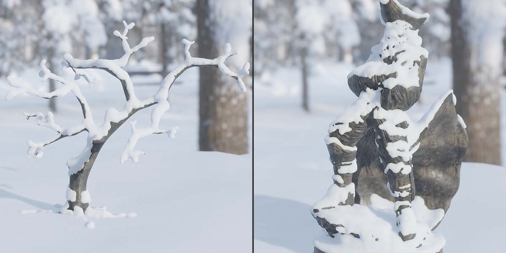 Your scene is nearly finished, the layout is perfect, the lighting is coming together, and the materials are starting to pop. Now all you need to do is add in the beautiful, fluffy snow you envisioned when you started the scene. You download a cool looking material, and plug it in . . . and immediately realize that it doesn't look quite right. Just a material won't be enough, it's too flat and consistent.